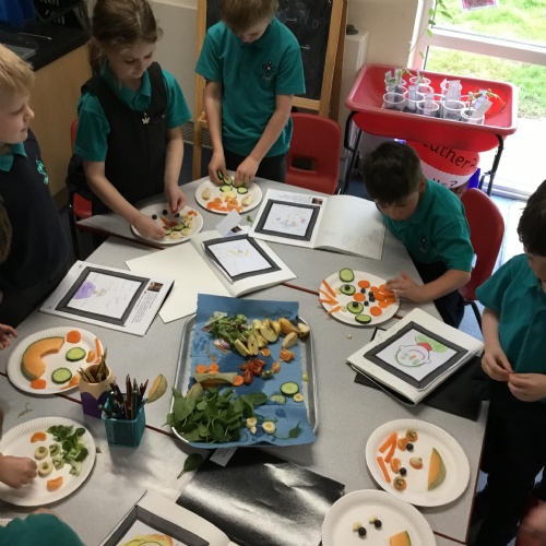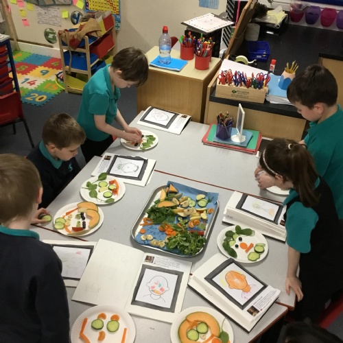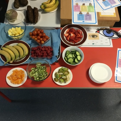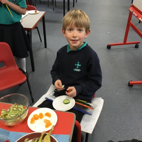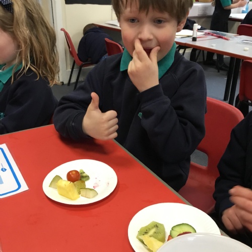 Year 1 have been focusing on their senses for our Science Week. We started our week with a senses treasure hunt and then began to learn about the human body. After spending some time looking at the body parts associated with each sense, we then looked at this question, 'Does the appearance of food affect how it tastes?'. We talked to specialists from Vista Veg and Gill from Phunky Foods to develop our knowledge about fruit and vegetables. After reading the Knobbly, Wobbly, Bobbly Celeriac and the Carrot Club stories, we then explored each of our senses by completing investigations using our sight, taste, smell and touch senses. Children described the fruit in different ways and some even tried new ones. Exploring fruit and vegetables in a variety of different ways allowed us to think carefully about our question.  From our experiments we then designed our own fruit for the future. These designs were created from the results collected from our investigations during the week. We have some cool looking fruit, which would be lovely to eat!